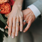 We love this ring! This is the band we chose to pair with my fiance's double halo heart ring. It looks amazing as a solo ring and paired with the heart shape. I don't have a photo of it on her hand together, since it's been boxed until the ceremony, but i snapped a pic of it on my finger. I am contemplating getting one for myself. It is beautiful Read more about review stating Perfect!and in natural light it really sparkles!Emily Paterson